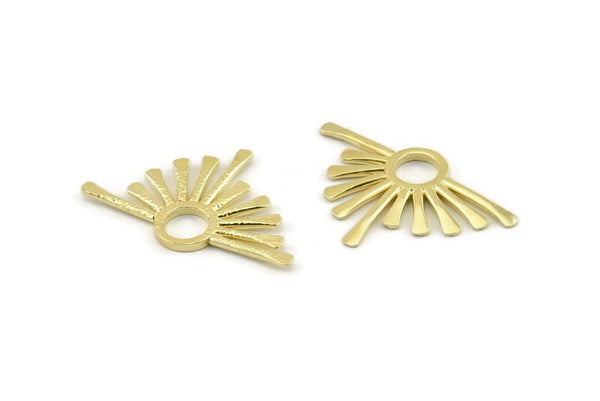 Brass Sun Pendant, Raw Brass Hammered Sunny Pendants (36x23x1.7mm) N1267