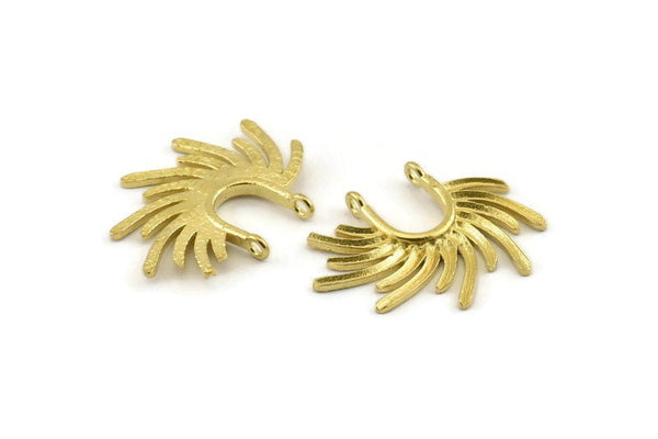 Raw Brass Textured Sunshine Charms With 2 Loops