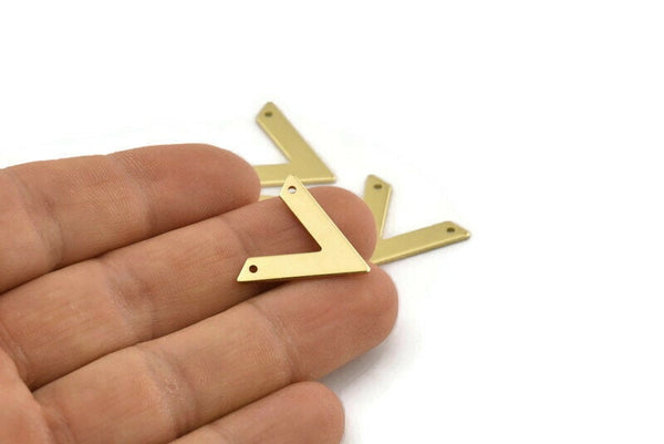 Brass V Shape, 24 Raw Brass V Shaped Charms With 2 Holes (22x18x1mm) M01245