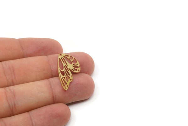 Brass Wing Charm, 6 Raw Brass Wing Charms With 1 Hole, Findings (30x14x0.80mm) SMP2875