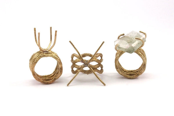 Raw Brass 4 Claw Ring Blanks for Natural Stones