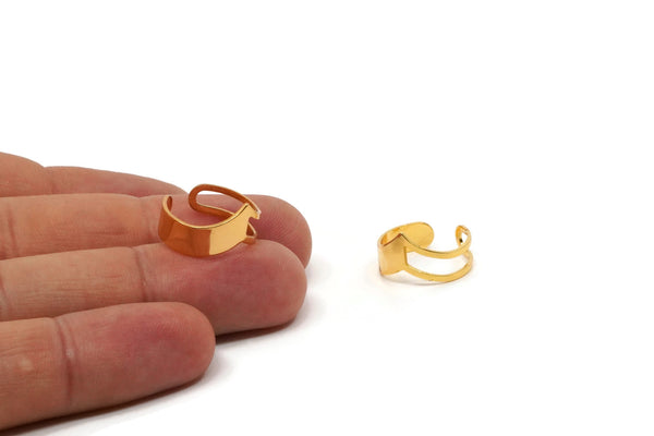 Copper Chevron Ring - 2 Gold Plated Copper Chevron Adjustable Ring Setting - 16-17mm / 23 Gauge Mn85
