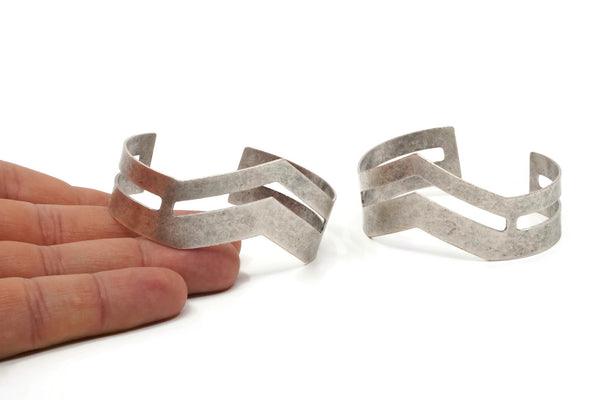 Double Chevron Bangle, Antique Silver Plated Brass Chevron Bracelet Cuff (150x19x0.80mm) Brc092