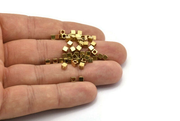 Raw Brass Tiny Square Cube Beads