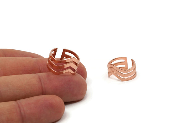 Rose Gold Chevron Ring - 4 Rose Gold Plated Adjustable Triple Chevron Ring Settings (16x17mm / 23 Gauge) MN01