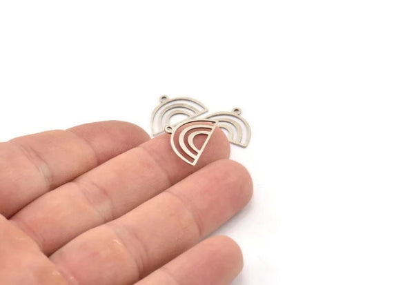 Antique Silver Plated Brass Semi Circle Charms With 1 Loop