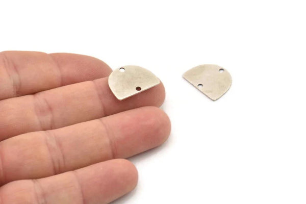 Semi Circle Charm, 6 Antique Silver Plated Brass Half Moon Charms With 2 Holes, Brass Connectors (18x14x0.60mm) A3214