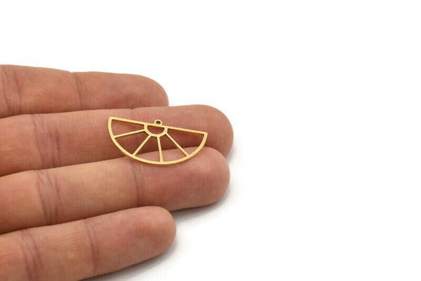 Semi Circle Charm, 6 Raw Brass Half Moon Charms With 1 Loop, Findings (18x30x0.80mm) SMP0976