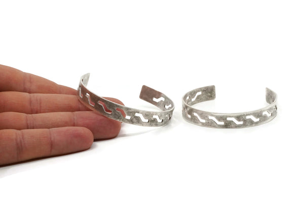 Silver Zigzag Cuff, Antique Silver Plated Brass Zigzag Cuff Bracelet Blank Bangles Without Holes (10x145x1mm) BRC124