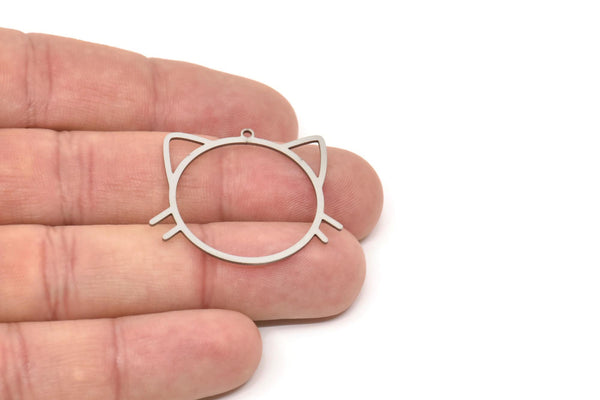 Steel Cat Charm, Stainless Steel Cat Charms With 1 Loop, Cat Findings, Animal Jewelry (20/25/30x0.80mm) SMP2493