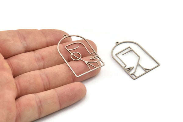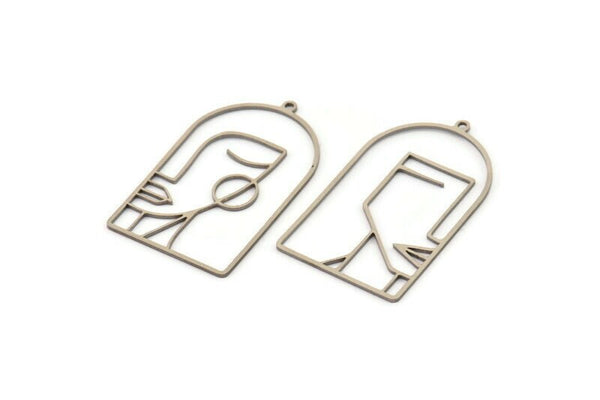 Stainless Steel Man And Woman Face Charms With 1 Loop