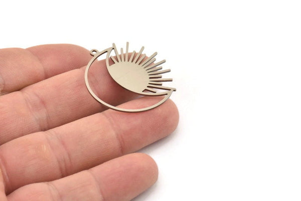 Stainless Steel Crescent Moon And Sun Shaped Charms With 1 Loop