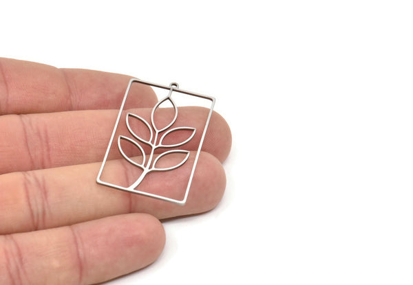 Steel Rectangle Charm, Stainless Steel Branch Patterned Rectangle Shaped Charms With 1 Loop, Findings (46x25x0.80mm) SMP2064