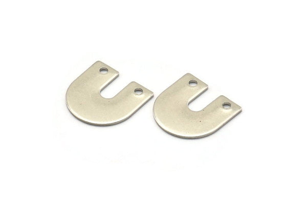 Steel U Shaped Charm, 24 Steel U Shaped Charms With 2 Holes (15x0.70mm) M02895
