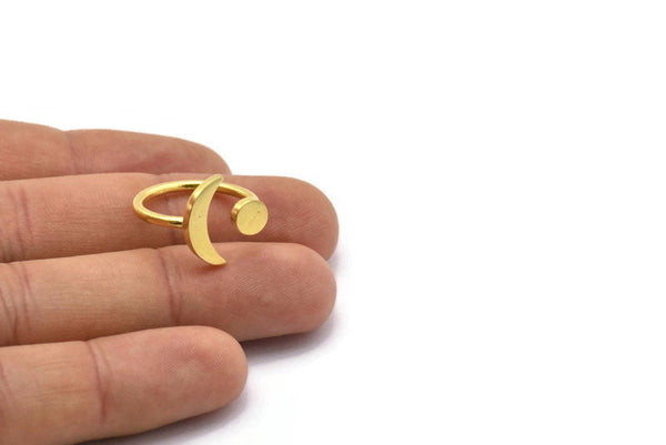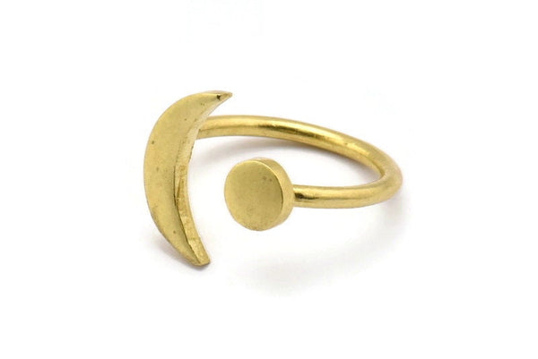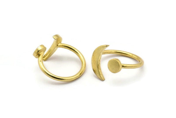 Universe Cosmos Ring - Raw Brass Moon And Planet Rings - Round Cabochon Size: 6mm N0127