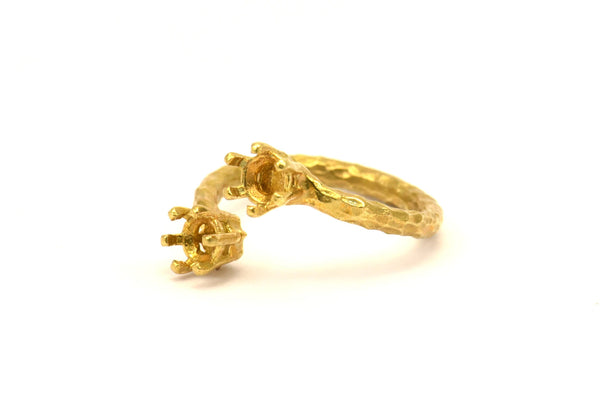 Raw Brass 6 Claw Ring Blanks with 2 Prong Settings