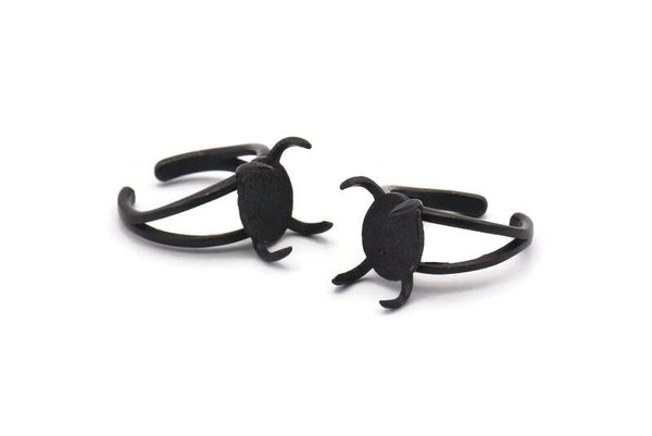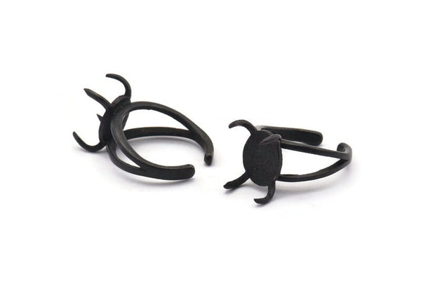 Oxidized Black Brass Adjustable 4 Claw Rings - Ring Stone Setting - Pad Size 12x10mm