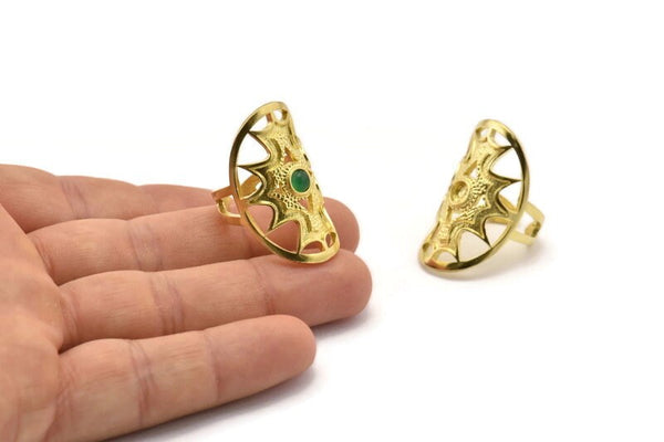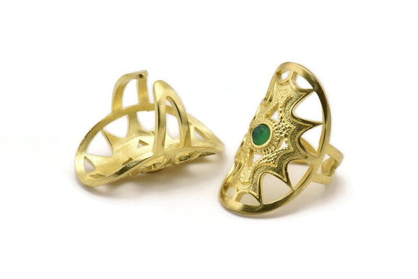 Raw Brass Boho Ring With 1 Stone Settings - Pad Size 4mm