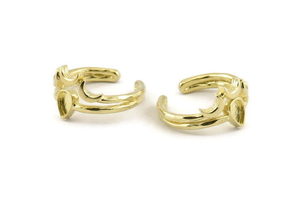 Brass Moon Ring, 2 Raw Brass Drop Ring With 1 Stone Settings - Pad Size 5x4mm N1277