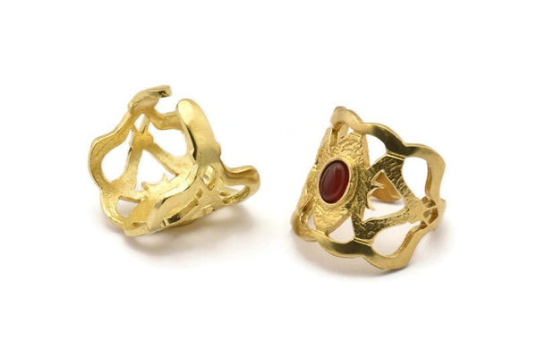 Brass Ring Setting, Raw Brass Duke Ring With 1 Stone Settings - Pad Size 4x6mm N1897