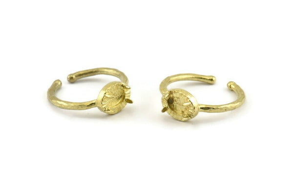 Brass Ring Settings, 10 Raw Brass Adjustable 4 Claw Ring - Ring Stone Setting - Pad Size 6x4mm N1297