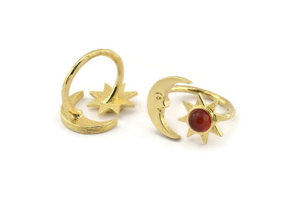 Brass Ring Settings, 10 Raw Brass Moon And Sun Ring With 1 Stone Setting - Pad Size 6mm N1498