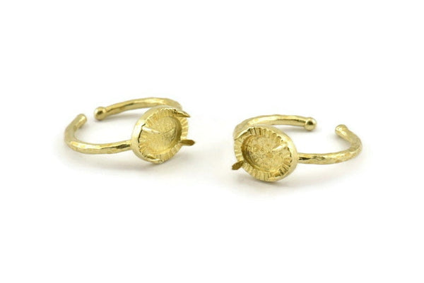 Brass Ring Settings, 3 Raw Brass Adjustable 4 Claw Ring - Ring Stone Setting - Pad Size 8x6mm N1298