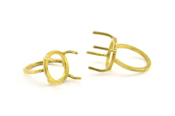 Brass Ring Settings, 4 Raw Brass Ring Settings With 4 Claws - Pad Size 13x16mm N2411