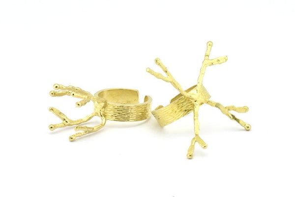 Claw Ring Settings - 2 Raw Brass 4 Claw Ring Blanks For Natural Stones V051