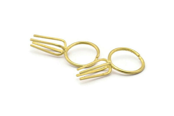 Claw Ring Settings, 2 Raw Brass Ring Blanks With 4 Claw For Natural Stones E634
