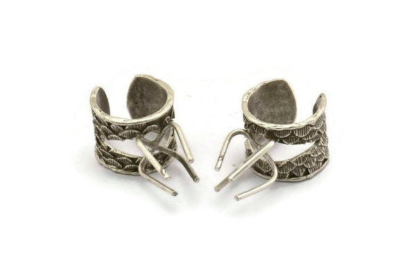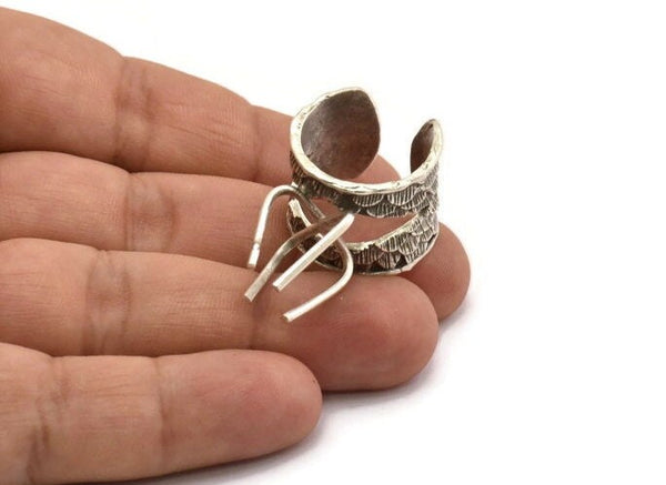 Claw Ring Settings - Antique Silver Plated Brass 4 Claw Ring Blanks For Natural Stones E657