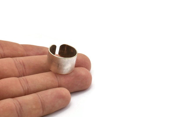 Ring Settings for Soldering, 2 Antique Silver Plated Brass Adjustable Smooth Ring Settings for Soldering (19mm) Mn53 H0264