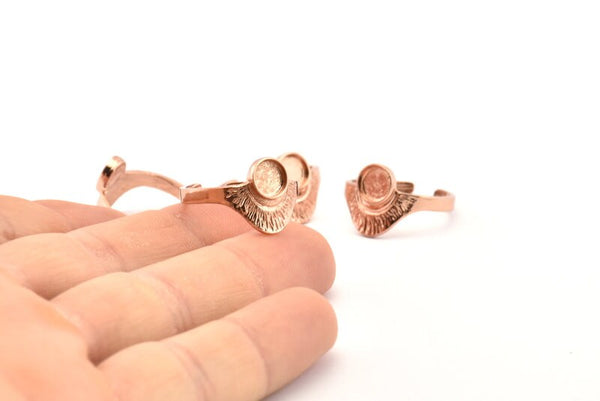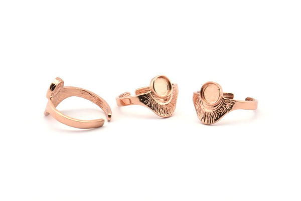 Rose Gold Ring Settings, 2 Rose Gold Plated Brass Adjustable Sunrise Rings - Pad Size 6mm N0737 Q0814