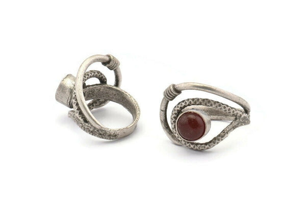 Antique Silver Plated Brass Exotic Rings With Stone Setting