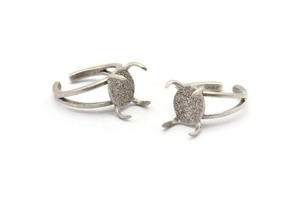 Antique Silver Plated Brass Adjustable 4 Claw Rings - Ring Stone Setting - Pad Size 12x10mm