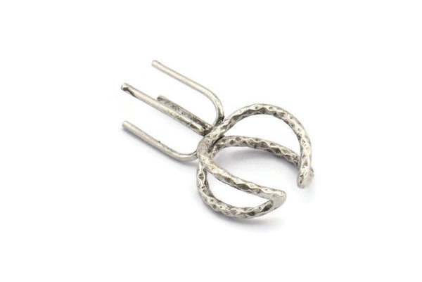 Antique Silver Plated Brass 4 Claw Ring Blanks For Natural Stones