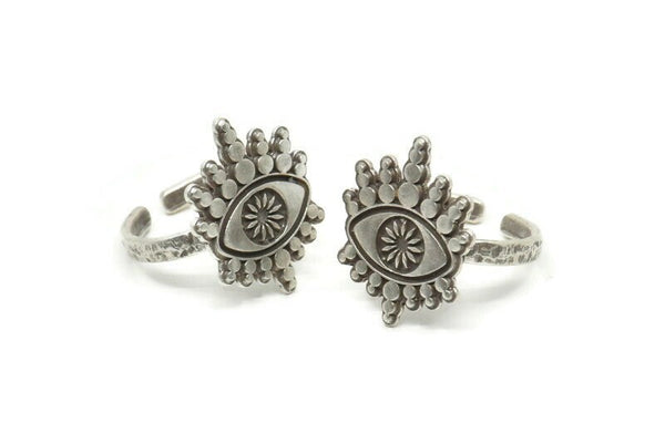 Silver Eye Ring, Antique Silver Plated Brass Eye Rings, Adjustable Rings, Evil Eye Rings - N2530