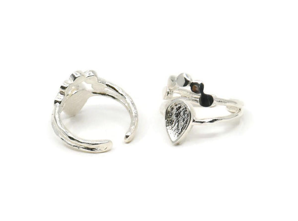 Silver Ring Setting, 2 925K Sterling Plated Brass Drop Rings With 1 Stone Setting - Pad Size 9x6mm V047 V077
