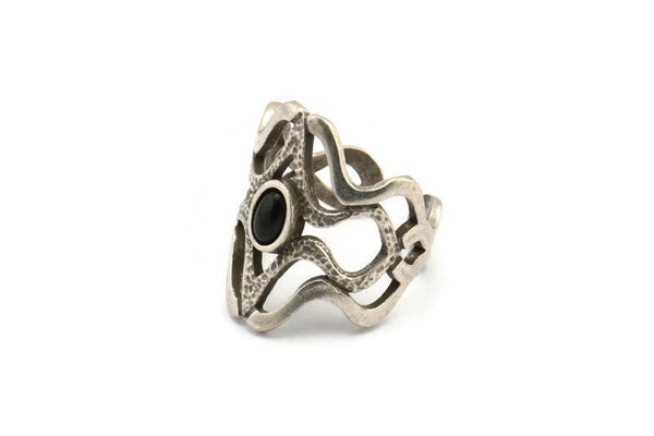 Antique Silver Plated Brass Duke Ring With 1 Stone Settings - Pad Size 6x4mm