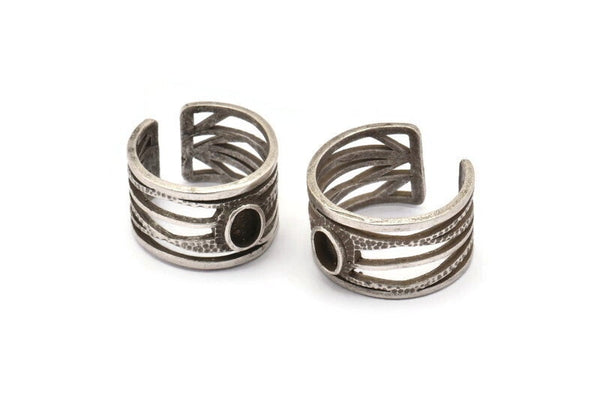 Antique Silver Plated Brass Duke Ring With 1 Stone Settings - Pad Size 6x4mm