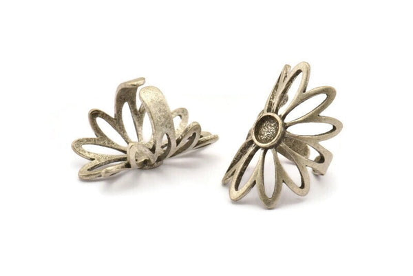 Antique Silver Plated Brass Flower Ring With 1 Stone Setting - Pad Size 6mm