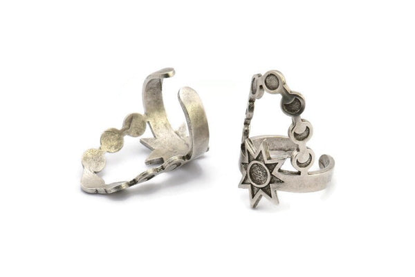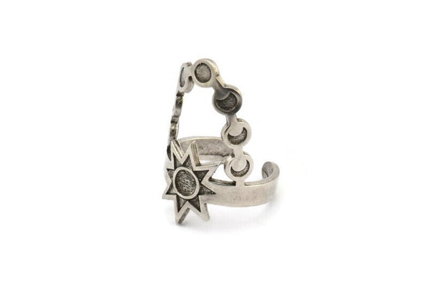 Antique Silver Plated Brass Moon Phases And Star Shaped Rings With 1 Stone Setting - Pad Size 4mm
