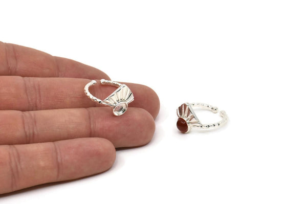 Silver Ring Settings, 2 925K Sterling Plated Brass Drop Ring With 1 Stone Setting - Pad Size 6mm N1112