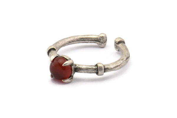 Antique Silver Plated Brass Adjustable 4 Claw Ring - Ring Stone Setting - Pad Size 6mm