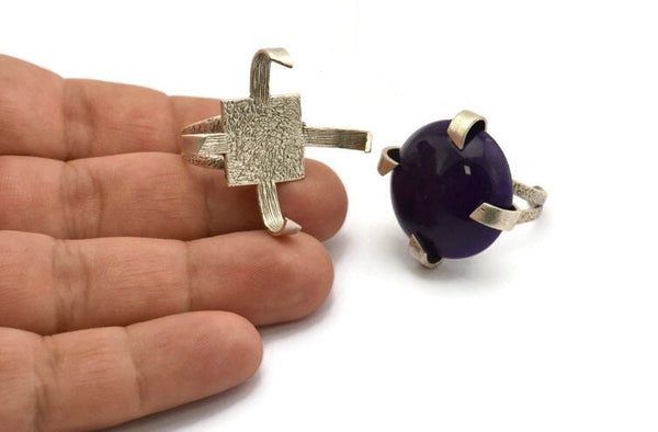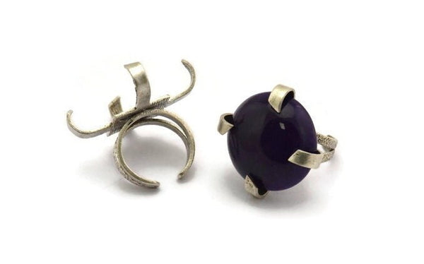 Antique Silver Plated Brass 4 Claw Ring With 1 Stone Setting