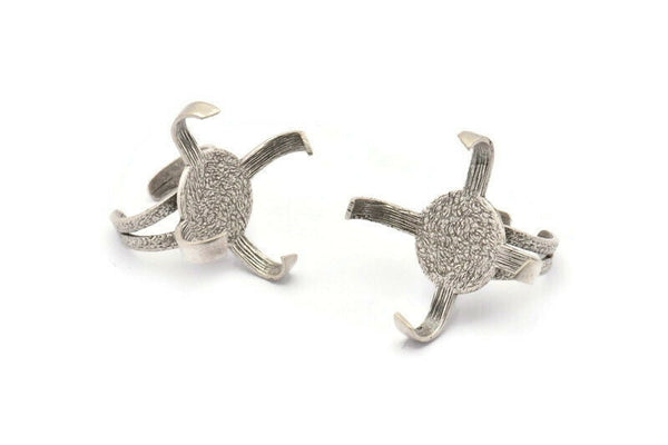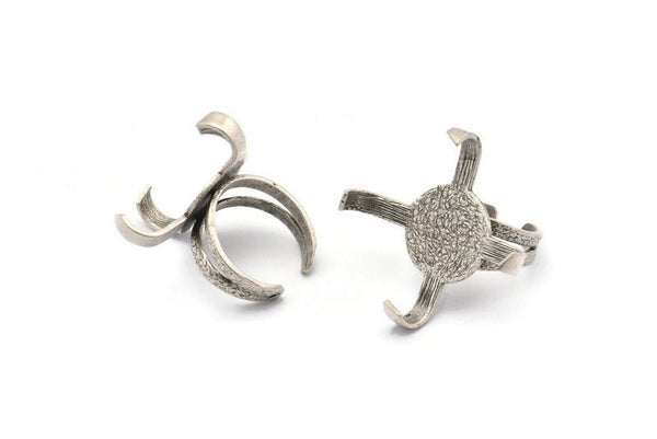Antique Silver Plated Brass 4 Claw Ring With 1 Stone Setting