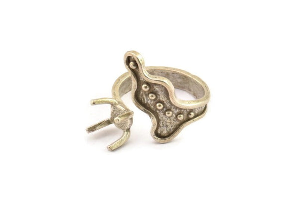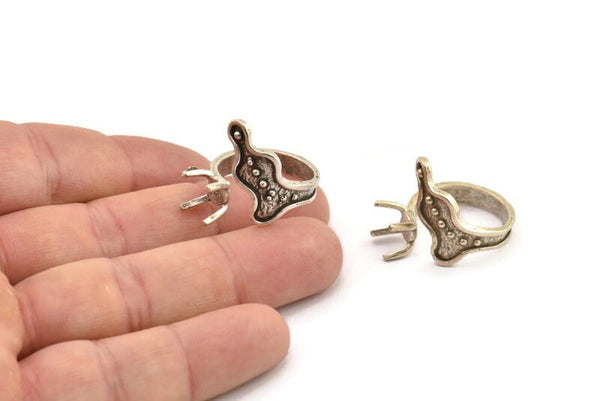Antique Silver Plated Brass Claw Rings, Adjustable Rings - Pad Size 6mm