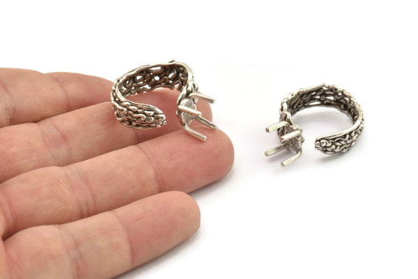 Silver Ring Settings, Antique Silver Plated Brass Claw Rings, Adjustable Rings - Pad Size 6x8mm N2561 H1647