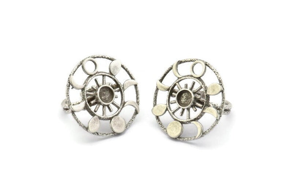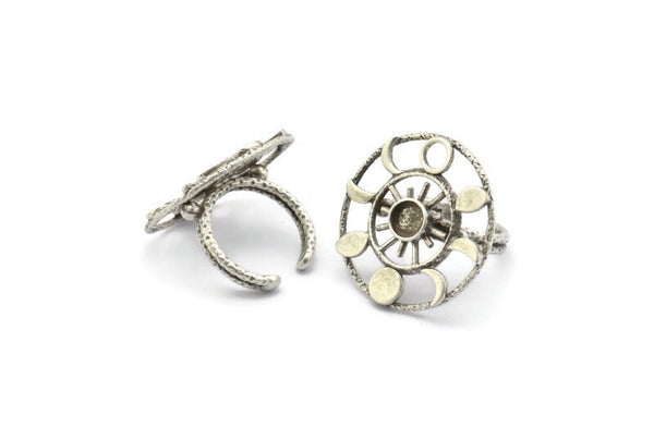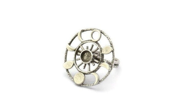 Antique Silver Plated Brass Moon Phases Ring With 1 Stone Setting - Pad Size 6mm