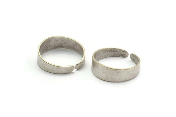Silver Smooth Ring, 4 Antique Silver Plated Brass Adjustable Smooth Rings, Ring Settings (21x7mm) A2570